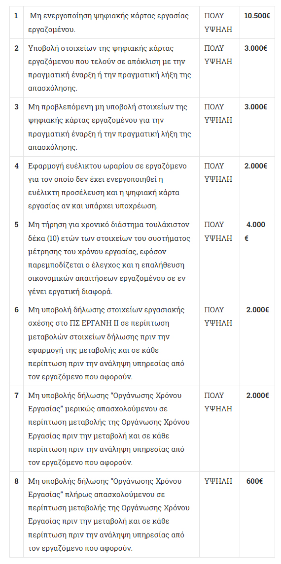 Οι ποινές υπολογίζονται ανά εργαζόμενο.